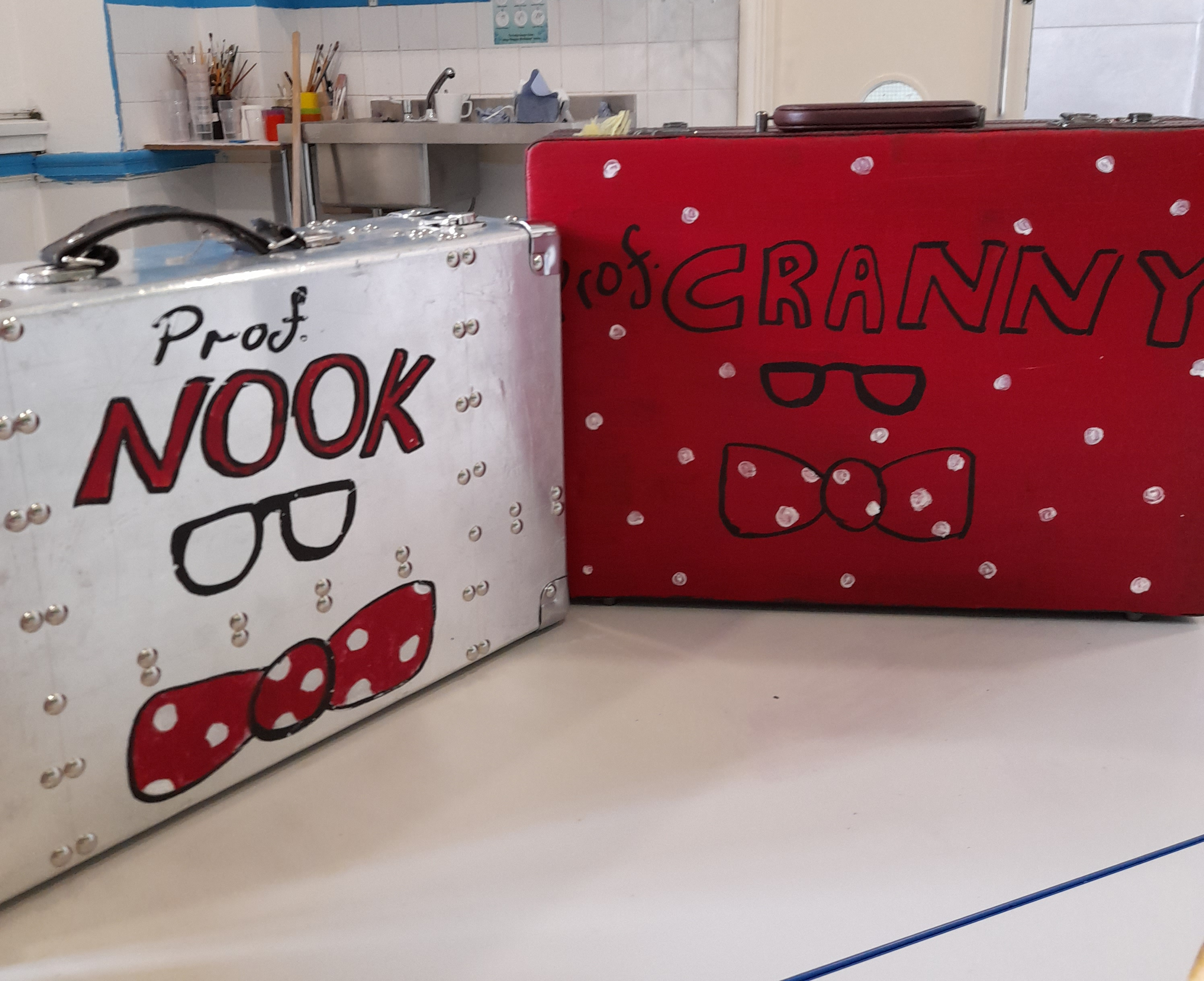 Nook and Cranny come as a walkabout act that can interact with families. They are very chatty and come with an essential storytelling kit that helps families create characters and conflict, contemplate good vs evil and come up with their own Bright Ideas. This act has been designed for noisy outdoor festivals and to help create atmosphere and connection.