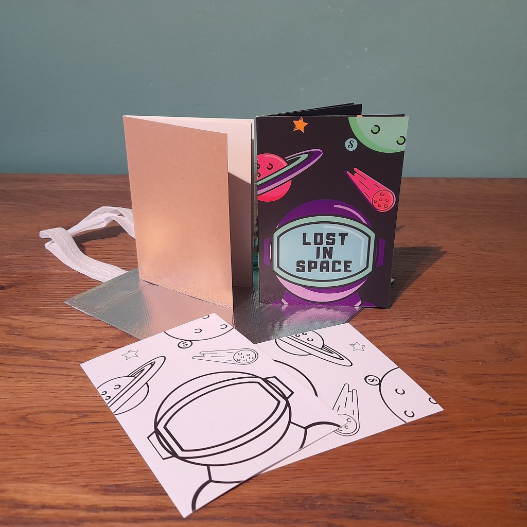 Come explore space and build your own tale. In the ‘Lost in Space’ booklet are 6 prompts to launch your own space stories. You could use them to write, draw or talk. Perfect for families with children aged 4-8, these busy bags are designed to get families imagining, storytelling and creating.